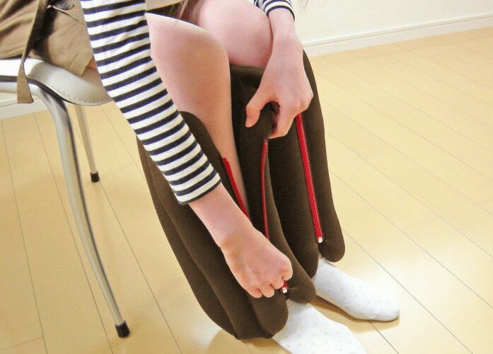 <落ちない><ふくらはぎまで包み込む><軽量でやわらか>と、車椅子の方の足温器に求められる要素をそろえました。