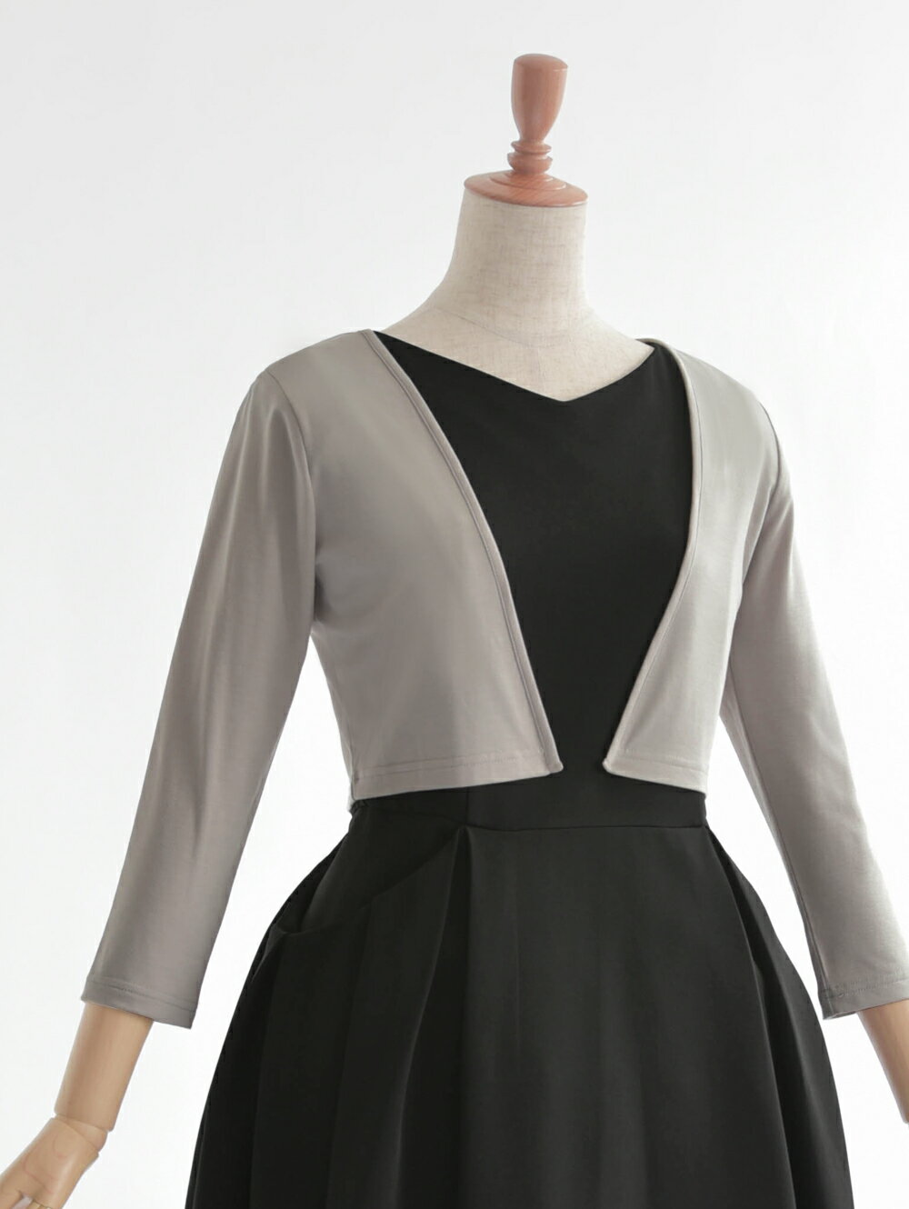 スペック(単位:cm) サイズ表記 36(ss)〜38(S) 40(M)〜42(L) 着丈 37.5 39.5 肩幅 33 35 アームホール 19 20.5 袖丈 45 46 バスト 90 98 重量 100g 130g 表地 ポリエステル60% レーヨン35% ポリウレタン5% 裏地 なし 伸縮性 あり 透け感 ネイビー / ホワイト / グレーベージュ:あり ポケット なし 製造中国 【Attention】 ・サイズは、当店平置き実寸サイズとなります。