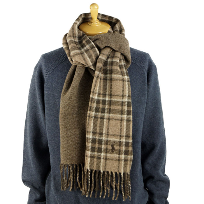 ラルフローレン POLO Ralph Lauren イタリア製 ワンポイント ポニー リバーシブル チェック マフラー ブラウン