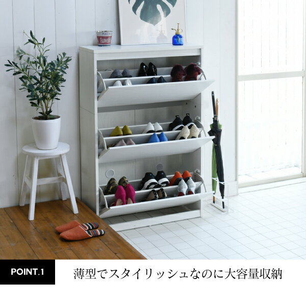 ■商品説明 玄関の限られたスペースでも場所を取らない薄型設計のシューズボックス。