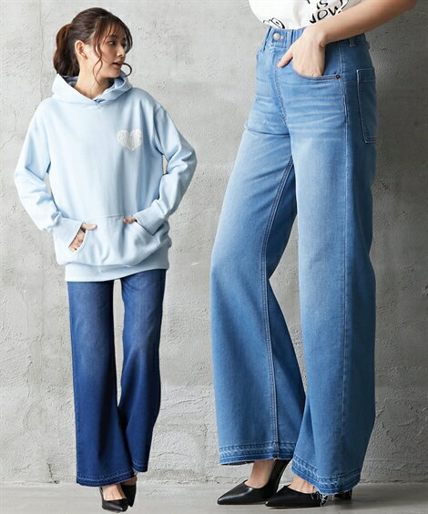 パンツ ワイド ガウチョ 大きいサイズ レディース ソフト デニム ネイビー系デニム/ブルー系デニム 6L/8L/10L ニッセン nissen