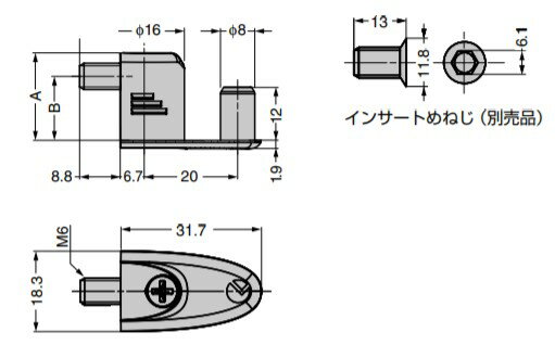 ※image photo 締結 金具 IT1190型 用 インサートめねじ 別売品 【説明】キャビネットの天板や底板を、側板と連結する締結金具です。