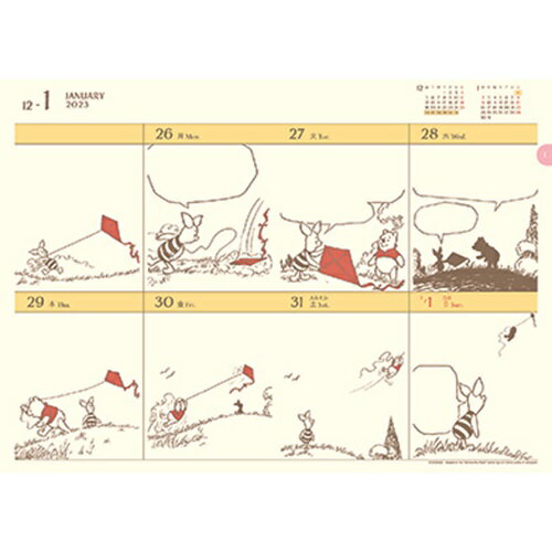 キャラの世界を楽しみながら、気軽に落書きするように…かわいい 2023年手帳 プーさんグッズ 文具 コミック風はちみつ大好き[Winnie the Pooh/くまのプーさん]の使いやすくてかわいいスケジュール手帳プーさんの世界観がギュッと詰まった、吹き出しに書き込みができるユニークなダイアリーです。