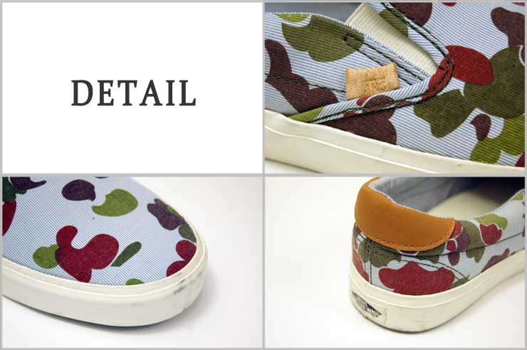 バンズカリフォルニア スリッポン アッパーの細かなステッチが特徴的で足入れ周りはスエードが使用され少し高級感ある1足となります。