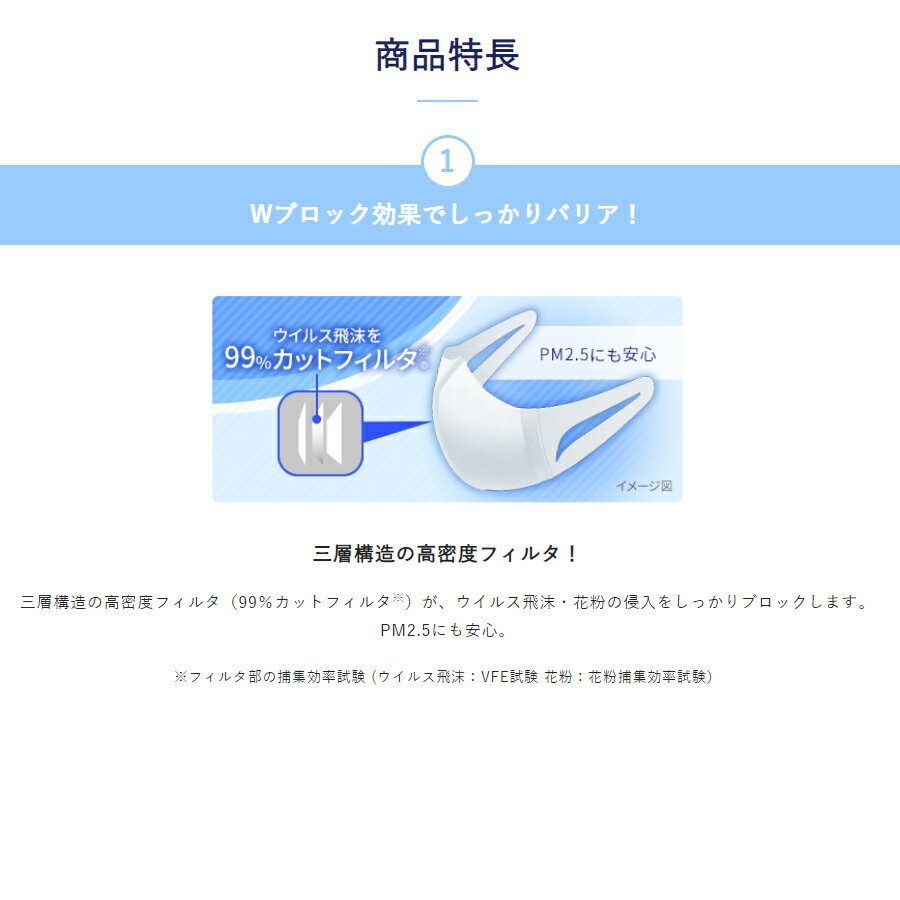 商品情報サイズ園児・低学年(3〜9歳)入数5枚フィルター超立体マスクスタンダード かぜ・花粉用99%カットフィルタ※フィルタ部の捕集効率試験平均値(ウイルス飛沫:VFE試験)息らくフィルタ耳かけやわらか素材の耳かけノーズフィットなしJAN4903111961900生産地日本素材・成分本体(ポリオレフィン、ポリエステル)、耳紐部(ポリオレフィン、ポリエステル)【日本製 PM2.5対応】超立体マスク こどもサイズ 5枚入 unicharm 使い捨てタイプ ユニチャーム マスク 日本製 こども キッズ マスク 日本製 ユニチャーム 園児 低学年 キッズ こども 2