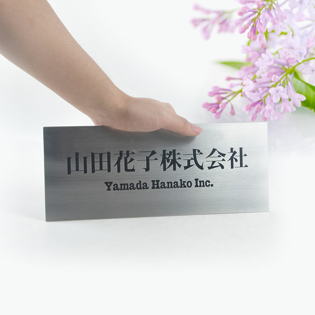 ギフト対応 株式会社などの法人や、法律事務所などの士業の方にご利用いただくのに最適なステンレス製の表札・看板です エッチング(彫り)加工ですので、文字が立体的に見え高級感のある仕上がりになります。