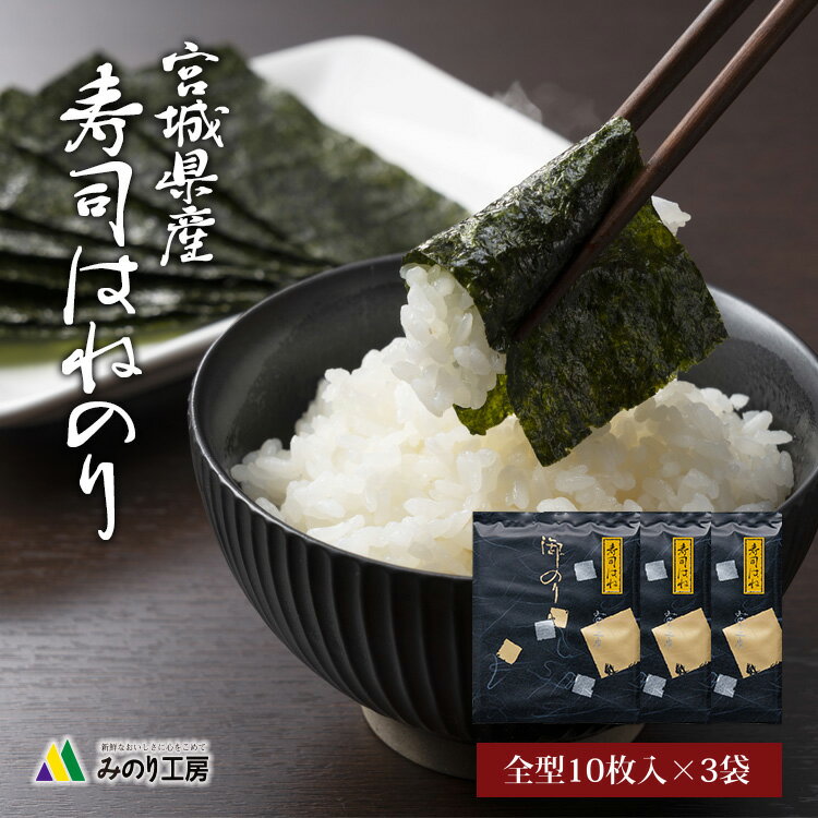 【送料無料】 寿司はね 焼き海苔 宮城県産 板のり 10枚 3袋 セット 30枚 訳あり 寿司のり 寿司海苔 はねのり 早摘み 香り 艶 ご飯 食品 栄養 産地 規格 旨味 味わい 家庭用 おにぎり 手巻き 業務用 パリパリ ビタミン ミネラル アミノ酸 メール便 即日発送