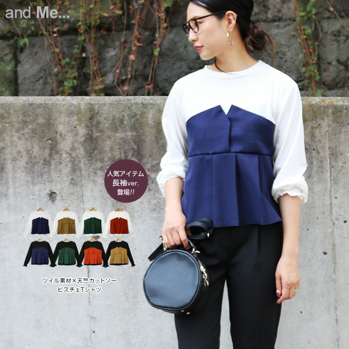 【メール便対応B】【SALE】ビスチェ付き 長袖 Tシャツ レディース ドッキング タック ツイル カットソー トップス