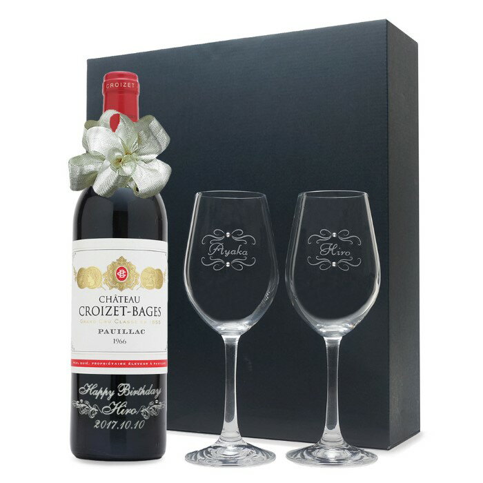 1966年 名前入り彫刻 生まれ年 赤ワイン シャトー クロワゼ バージュ 辛口 ペアワイングラスセット 昭和41年 名入れ 誕生日プレゼント ワインセット 化粧箱入