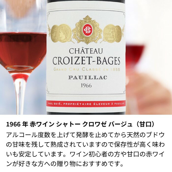 1966年 生まれ年 赤ワイン シャトー クロワゼ バージュ 辛口 昭和41年 男性 女性 誕生日プレゼント ワインセット 木箱入