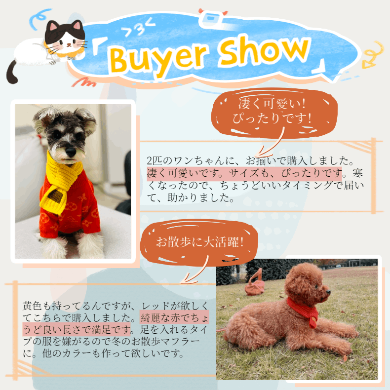 ■ニットマフラーだけでも十分オシャレですが、お洋服と組み合せればもっとオシャレ! ■お友達や親族にワンちゃんを飼っている方へのプレゼントとしてもとっても喜ばれます。