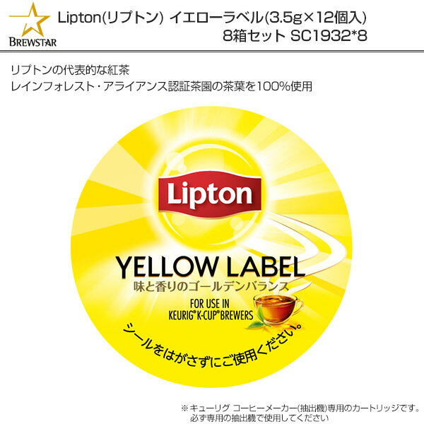 BREWSTAR(ブリュースター) Lipton(リプトン) イエローラベル(3.5g×12個入) 8箱セット SC1932*8 商品説明 ●原産国:ケニア、インドネシア他●リプトンの代表的な紅茶●レインフォレスト・アライアンス認証茶園の茶葉を100%使用●内容量:1ボウル(3.5g×12個入)×8個セット※K-Cupパック1個で1杯分が抽出できます※キューリグコーヒーメーカー(抽出機)専用のカートリッジです※個包装のシールをはがさずに御使用ください※こちらの商品は2021年12月20日に型番を変更しております。