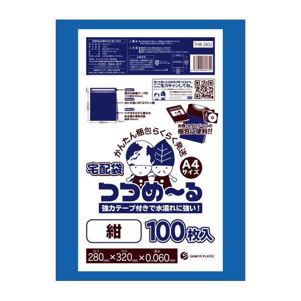 【まとめて10ケース】THB-2832-10 宅配袋 A4サイズ ヨコ280xタテ320(マチ付)+フタ40x0.060mm厚 紺 100枚x12冊x10箱 1冊あたり1177.6円/宅配ビニール袋 デリバリーバック 防水 梱包材 袋 配送袋 フリマ 通販 サンキョウプラテック 送料無料 まとめ買い あす楽 即納