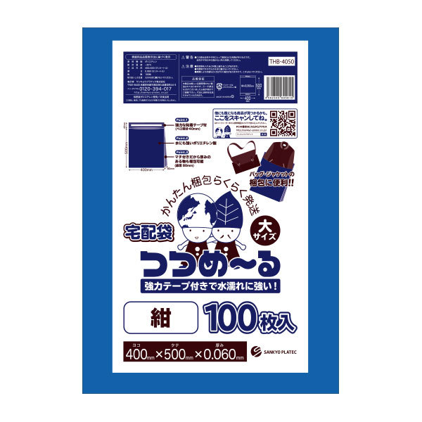 【まとめて10ケース】THB-4050-10 宅配袋 大サイズ ヨコ400xタテ500(マチ付)+フタ40x0.060mm厚 紺 100枚x6冊x10箱 1冊あたり2300円/宅配ビニール袋 デリバリーバック 防水 梱包 袋 配送袋 フリマ 通販 サンキョウプラテック 送料無料 まとめ買い あす楽 即納