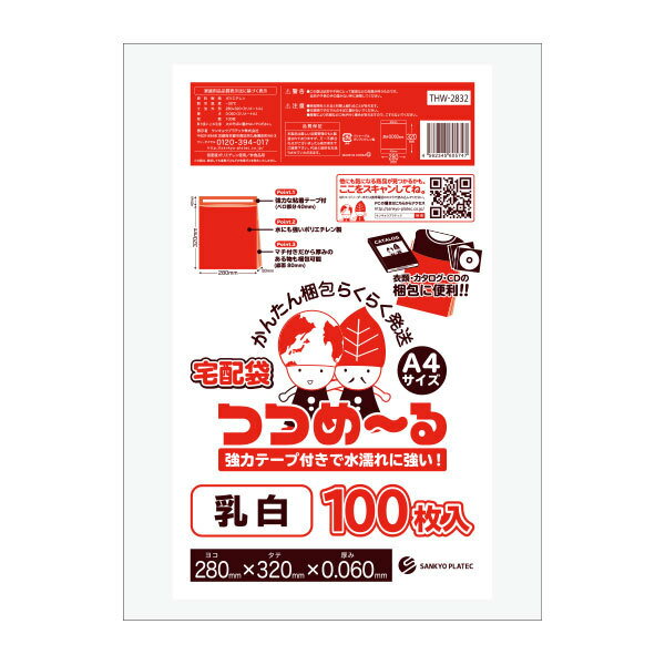 【まとめて10ケース】THW-2832-10 宅配袋 A4サイズ ヨコ280xタテ320(マチ付)+フタ40x0.060mm厚 乳白 100枚x12冊x10箱 1冊あたり1177.6円/宅配ビニール袋 デリバリーバック 防水 梱包材 袋 配送袋 フリマ 通販 サンキョウプラテック 送料無料 まとめ買い あす楽 即納
