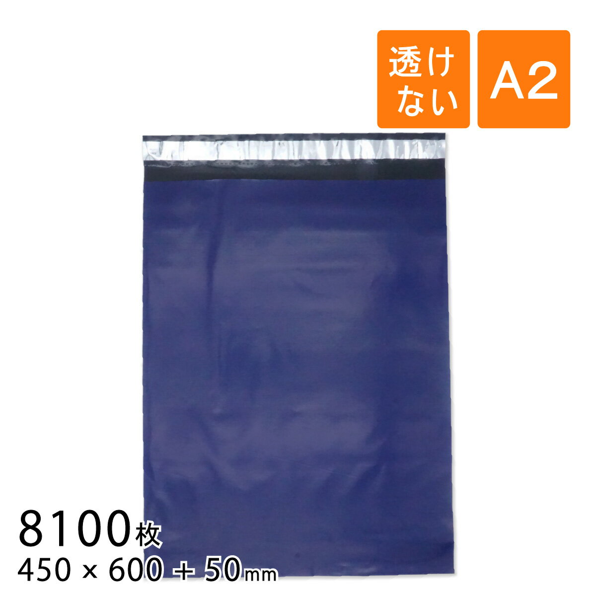 宅配ビニール袋 幅450×高さ600+折り返し50mm A2サイズ 厚さ0.06mm ネイビー色 開封ミシン目付 8100枚