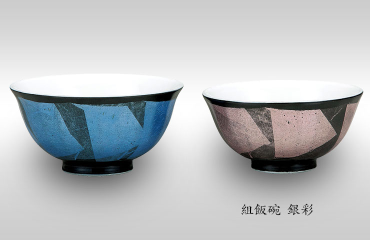 【九谷焼】組飯碗 銀彩【九谷焼】組飯碗 銀彩 商品説明 <上質な雰囲気漂う銀彩の九谷焼> 銀彩(釉裏銀彩)とは、銀箔を貼り付けて、その上から透明な釉薬や色釉薬をかけて焼き上げる技法です。