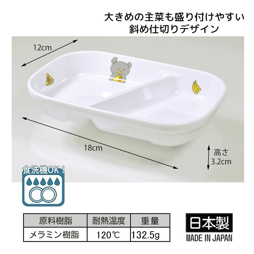 こぐまちゃんのメラミン角二つ仕切り皿(大) 日本製 食洗機OK こぐまちゃん しろくまちゃん ベビー キッズ 食事 離乳食 食器 うつわ プレート 軽量 通園 通学 新学期 準備 幼稚園 保育園 お皿 絵本 こぐま社
