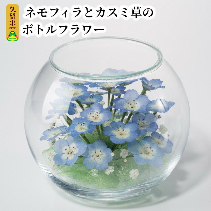 【ふるさと納税】ボトルフラワー D115×H92 ネモフィラ カスミ草 ドライフラワー ガラス容器 インテリア 雑貨 観賞用 花 フラワー アレンジメント ギフト 贈り物 福岡県 久留米市 お取り寄せ 送料無料